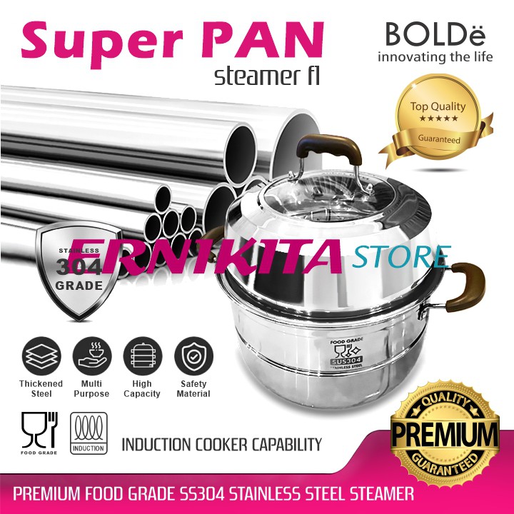 Detail BOLDe SUPER PAN STEAMER F1 - Panci Kukus Stainless Premium Food Grade 2 Susun 30 cm Bisa Kompor Induksi
