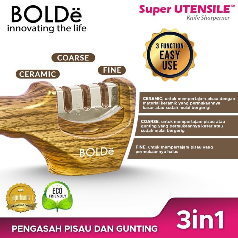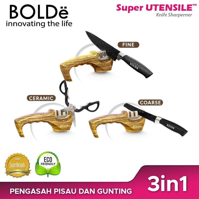 Pengasah pisau terbaru dari BOLDe. Punya koleksi pisau kesayangan? pastinya kita tidak ingin pisau kesayangan menjadi tumpul atau tidak maksimal ketika digunakan. Kini BOLDe hadir menjawab kebutuhan tersebut! Pengasah pisau dengan 3 kemampuan.