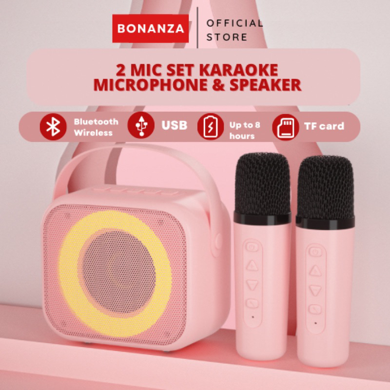 NEW!!! BONANZA Mic Speaker Set 2 Mic Karaoke Bluetooth Wireless Megabass Stereo Sound