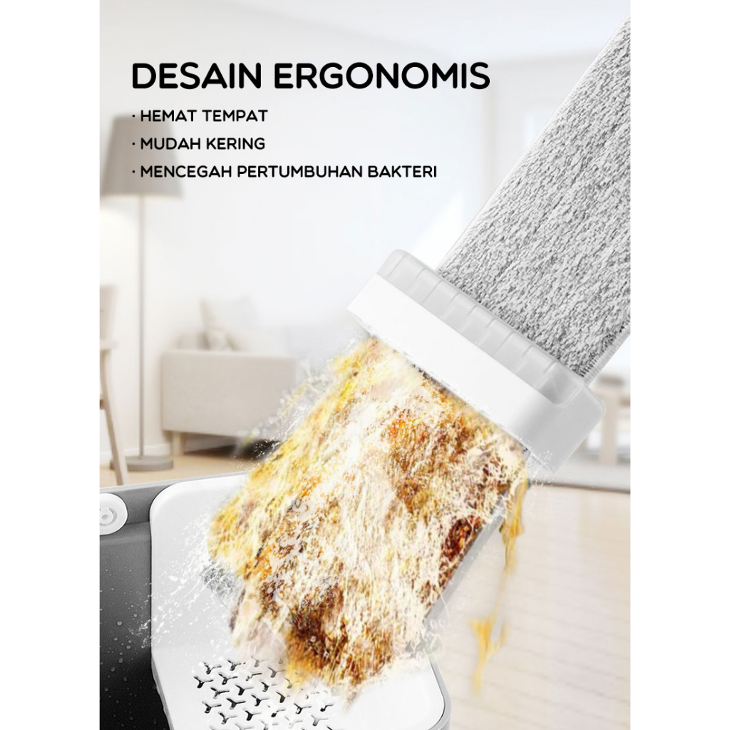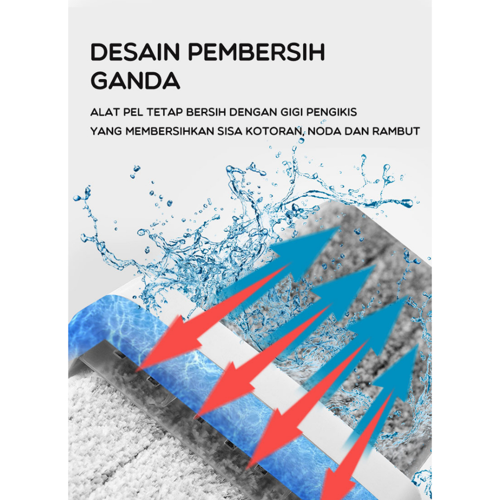 Kelebihan : - 2 kegunaan, bisa dipakai kering dan basah - Gagang pel ergonomic handle, sehinggda tidak perlu membungkuk - Bagian kepala pada pel, bisa diputar sampai 360 derajat - Bisa membersihkan sampai ke celah - Mengeringkan kain pel dengan cepat