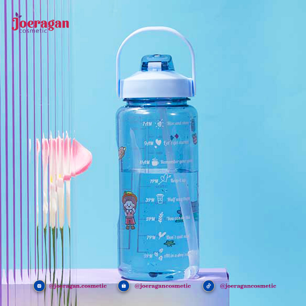 Detail Bonbox Botol Minum Motivasi 2 Liter 2000ml Jumbo I Tumbler Portable Sport Air Plastik Bening Handle I Botol Minum Viral Bahan PC Food Grade
