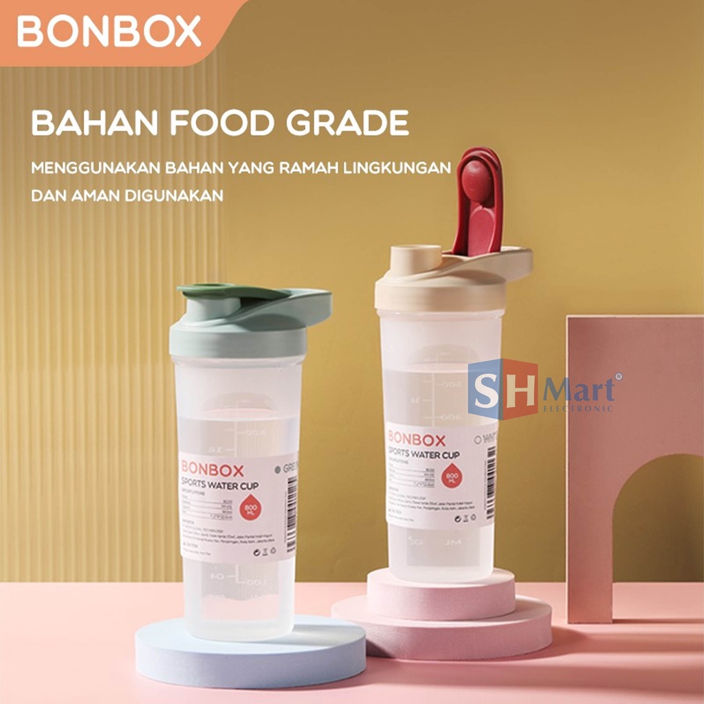 Detail BONBOX BOTOL MINUM SHAKER PORTABLE PLASTIK SPORT ANTI BOCOR FOOD GRADE - GREEN