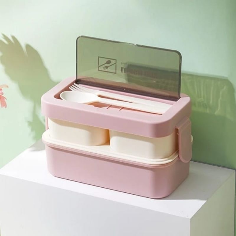 Bingung mau bawa banyak lauk ? Nih tempat makan bekal ini solusinya karena dilengkapi dengan dua susun dan 3 sekat sehingga makanan bisa tersusun dan tertata dengan baik juga tidak tercampur disertakan tutup tersegel rapat sehingga tidak tumpah. Tutup kotak terdapat karet tebal yang terbuat dari silikon gel sehingga tertutup rapat dan menjaga makanan agar tetap segar serta fitur tambahan sebagai standing hp untuk bisa nonton sambil menikmati makanan.