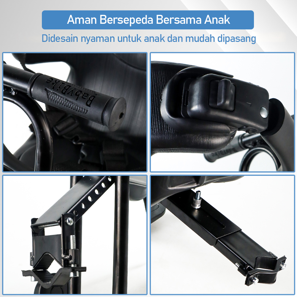 Fitur Bersepeda dengan Aman Bersama Anak Jika ingin bersepeda bersama dengan anak sangat penting untuk memastikan keamanannya, menggunakan boncengan sepeda untuk anak merupakan pilihan yang tepat. Dilengkapi dengan penjaga membuat anak akan tetap aman di kursinya walaupun Anda bersepeda melewati jalan yang terjal sekalipun.