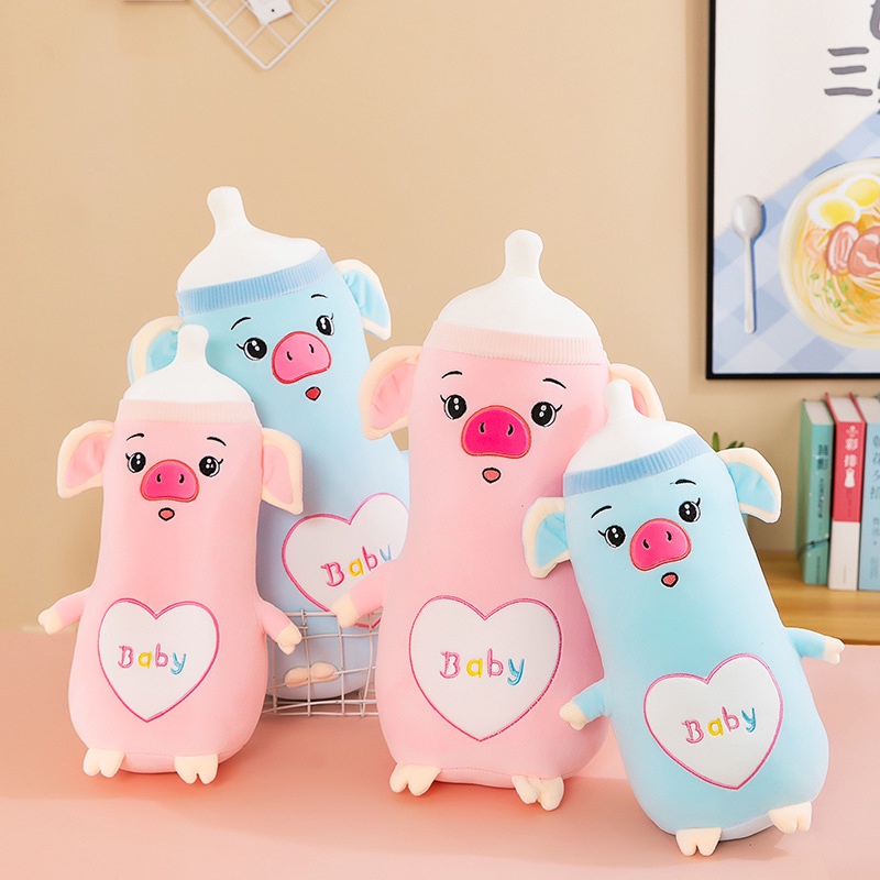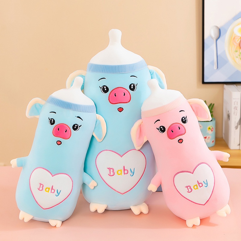 Tonjolan: Tonjolan: Tonjolan: Babi Biru Dan Merah Muda Dengan Botol Susu Tiga Ukuran: Bahan Mewah Lembut Bahan Mewah Dapat Dicuci Dan Tahan Lama Untuk Menggunakan Menggunakan Penggunaan Sebagai Bantal, Bantal Dan Boneka