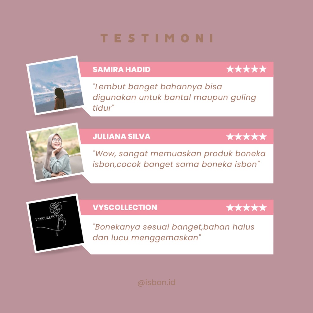 Bahan impor best quality premium isi boneka dengan polyester grade A sehingga tidak mudah kempes.