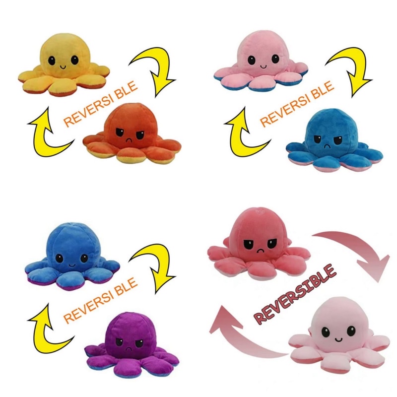 Detail Boneka Gurita Octopus Halus Bolak - Balik Dua Sisi Reversible