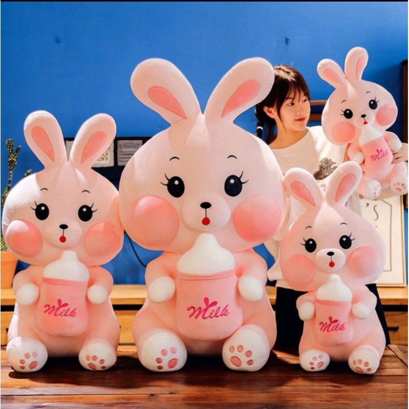 Boneka Kelinci pegang dot susu /Boneka Rabbit Pink Milk Bottle LUCU Mainan anak perempuan