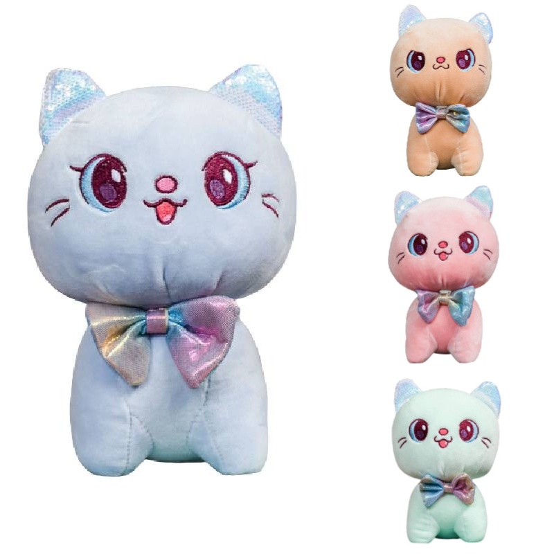 Detail Boneka Kucing Plush Lucu Dan Kreatif, Cocok Untuk Gifting, Dibuat Dengan Bulu Pendek Dan Isian Katun Pp, Tersedia Banyak Warna Tinggi 23cm