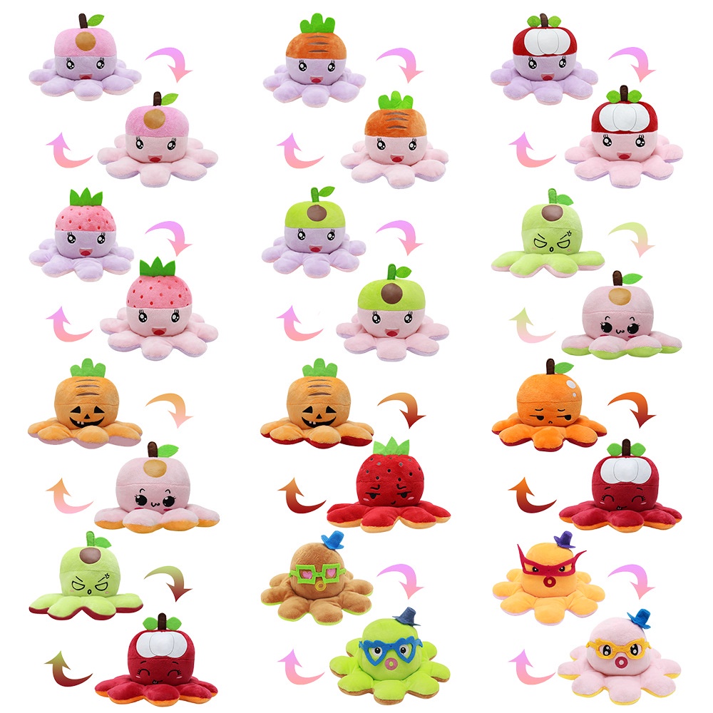 Boneka Buah Hewan Oktopus Reversibel Plushie Boneka Buah Hewan Hadiah Ulang Tahun Untuk Anak-anak