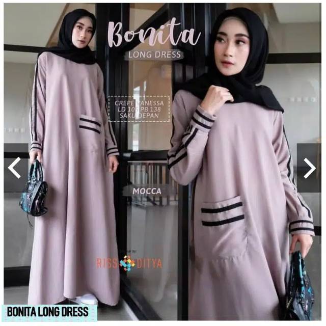 Bonita long dress Bahan Moscrepe Ukuran All Size fit To L