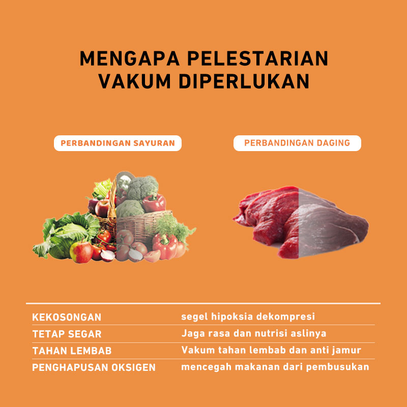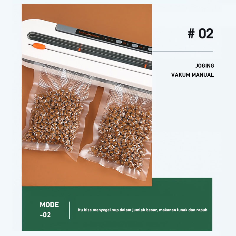 - -Dua Mode Penyegelan: Penyegel Makanan Vakum Dirancang Dengan Dua Mode Yang Dapat Dipilih, Yang Dapat Menyediakan Makanan Anda Dengan Pengawetan Terbaik Berdasarkan Jenis Makanan Yang Berbeda. Pilih Pengaturan Kering Untuk Makanan Padat Dan Pengaturan Lembab Untuk Makanan Yang Direbus, Direbus, Atau Dikukus.