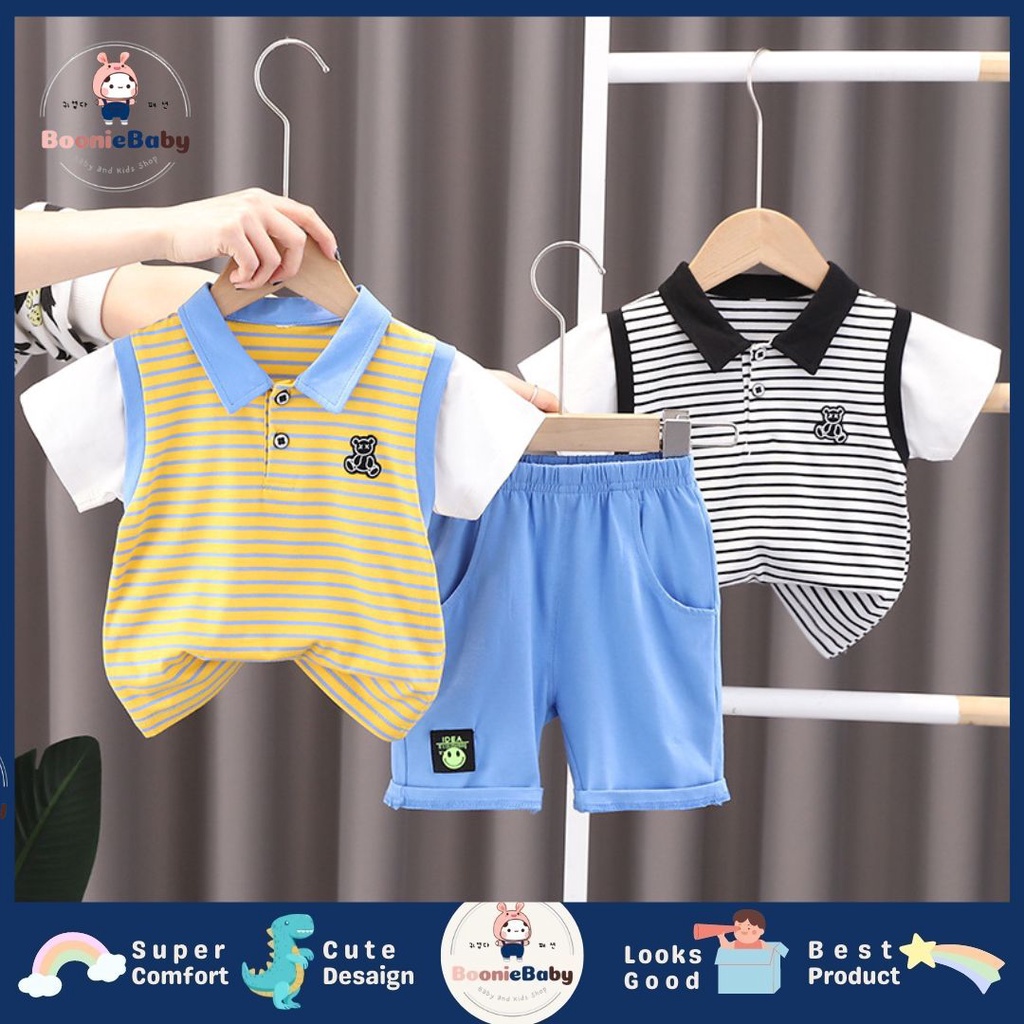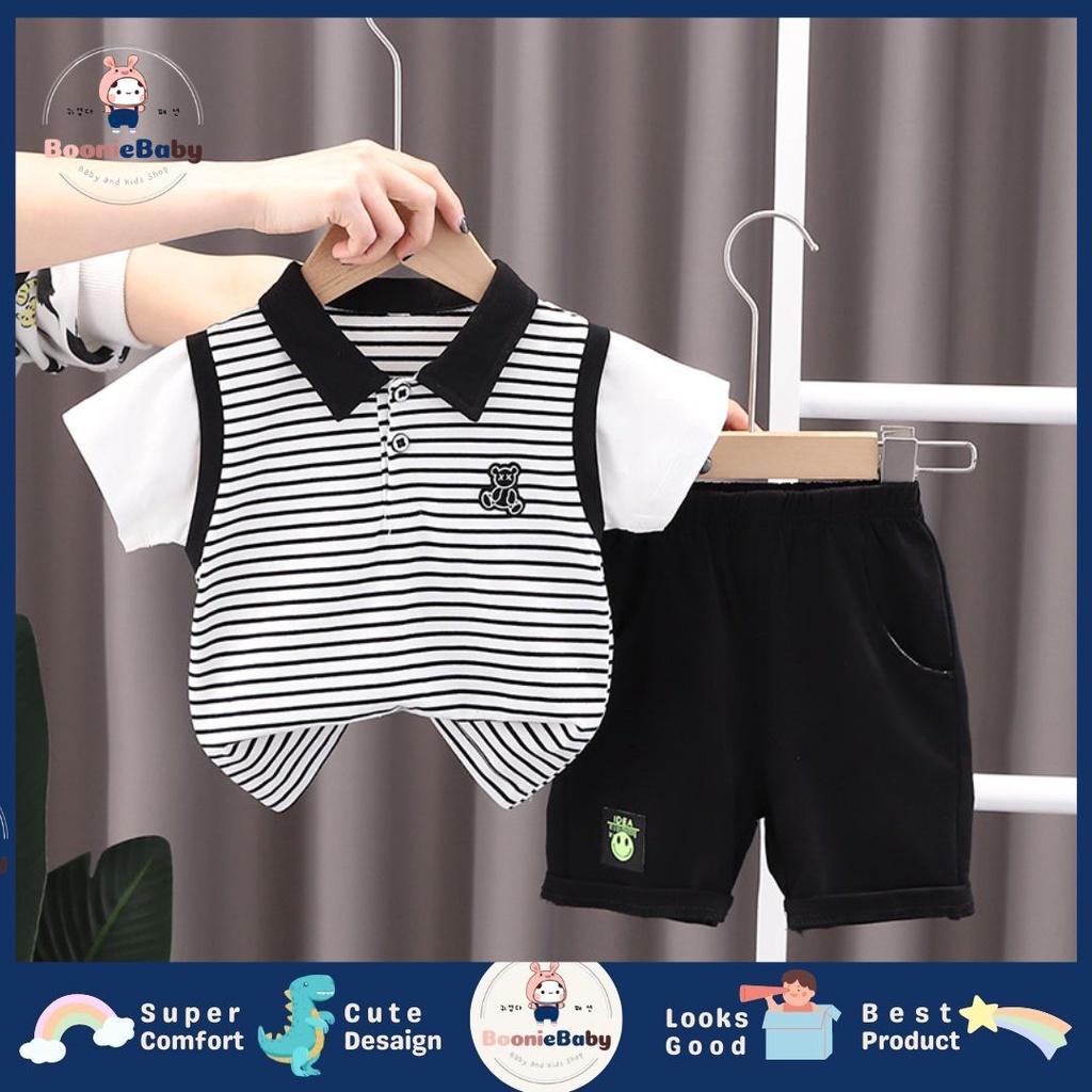 Fashion Bayi & Anak > Pakaian Anak Laki-Laki > Jas & Setelan > boonie COD setelan kemeja anak laki laki import baju anak cowok original impor kemeja anak cowok import kemeja lengan pendek celana pendek motif SET KRAH JOSE