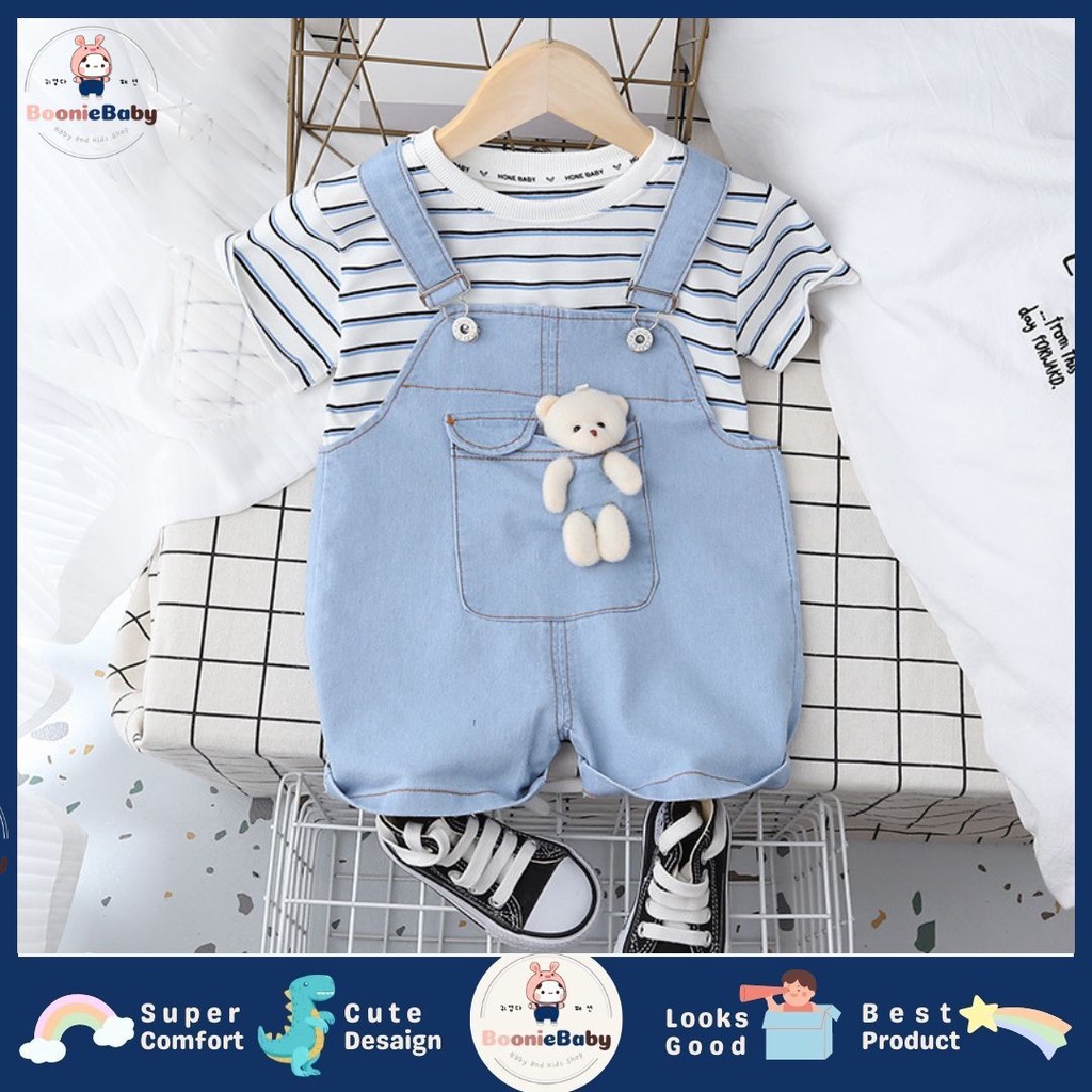 Fashion Bayi & Anak > Pakaian Anak Laki-Laki > Jas & Setelan > boonie setelan baju anak laki laki import Setelan anak cowok import baju anak laki laki import motif garis simple SET ANSOP H BEAR