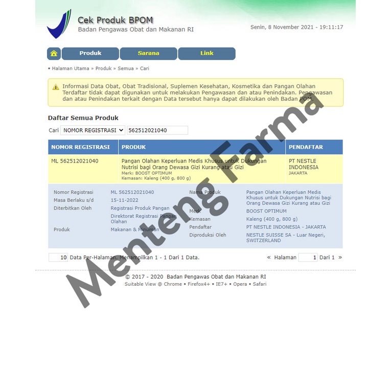 BPOM No : ML 562512021040
