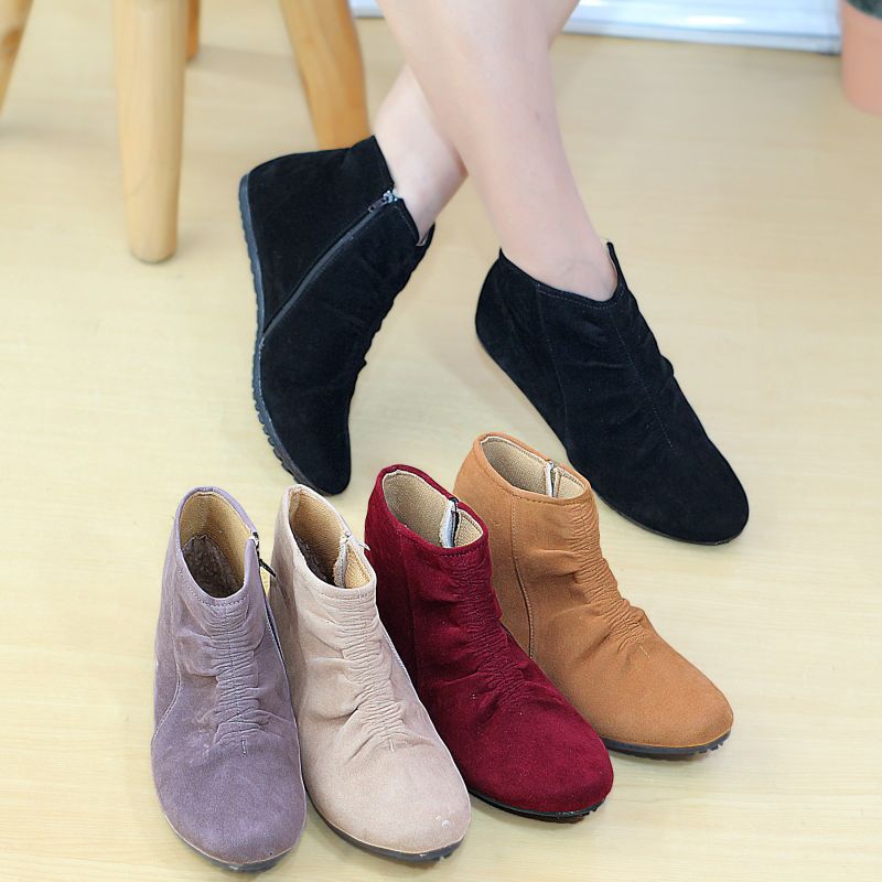 Boots flat wanita Brd 22 sepatu yang cocok dipakai buat santai, bagian dalam dilapis busa dan bahan bludru yang lembut jadi nyaman dipakai,sol karet hitam yang nga licin,ukuran 37-40 size kaki 37 23 cm 38 23,5 cm 39 24 cm 40 24,5 cm ayo diorder kakak.