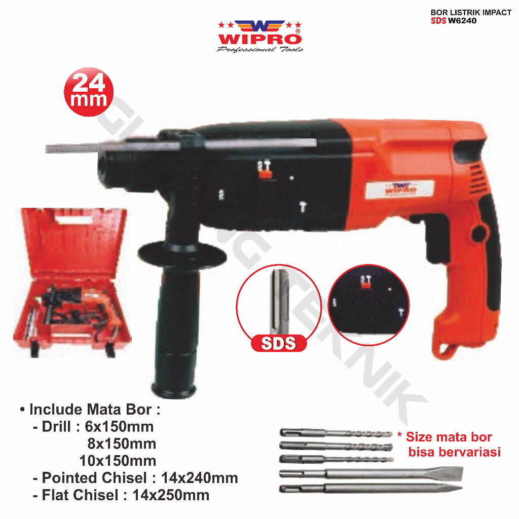 Detail Bor Tangan Listrik Impact SDS 24mm WIPRO W-6240 / Bor Listrik Beton Impact SDS W 6240 W6240 WIPRO