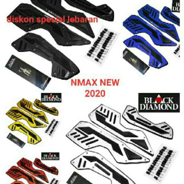 WARNA MERAH/GOLD/BIRU/SILVER/HITAM Fitur : -Karpet Bordes Pijakan Kaki Yamaha All New Nmax-155 2020/2021/2022 -Model : New Model 2020 -Bahan : CNC Aluminium -Merek : Black Diamond Best Quality -Made in : Thailand -Kelengkapan : Baut Stanlies Anti Karat Dan Mur Karet Kuningan