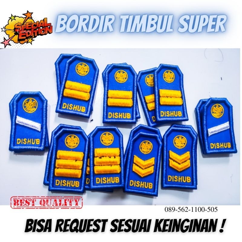 Bordir 3D pangkat Dishub, harga 10.000 an aja kak.