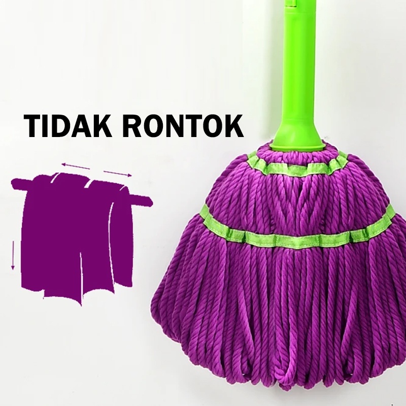 Keunggulan : - Daya serap tinggi - Ringan - Tanpa serat benang dan kotoran - Gagang pel dapat diatur panjangnya