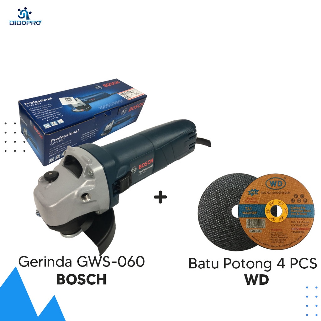 Paket yang didapat : 1 Unit Mesin GWS 060 dalam box. Free 4 pcs mata potong besi