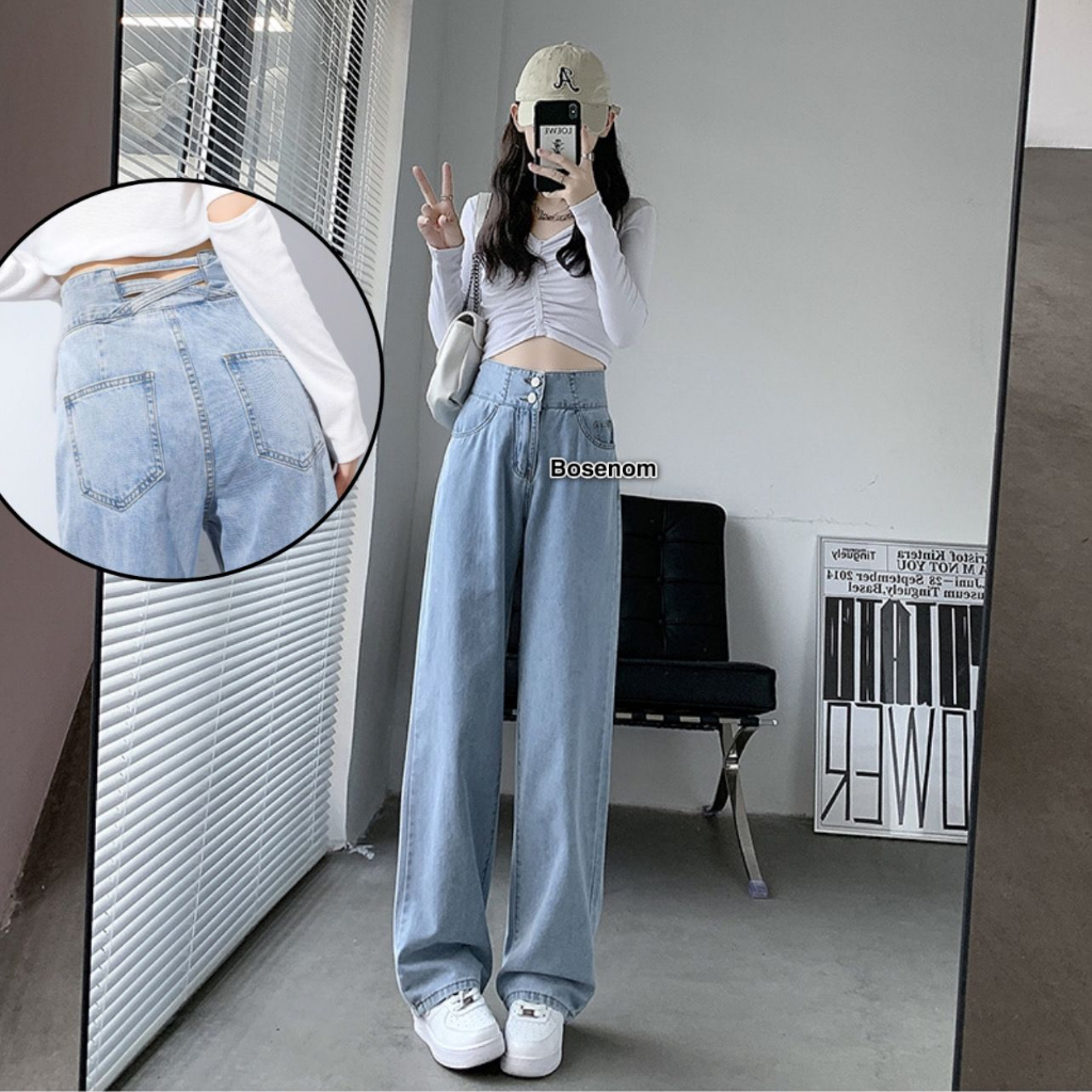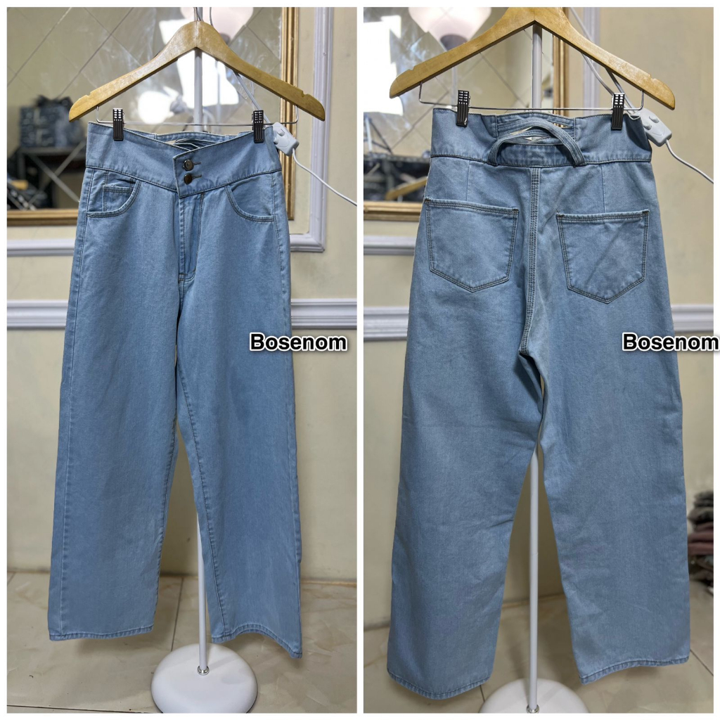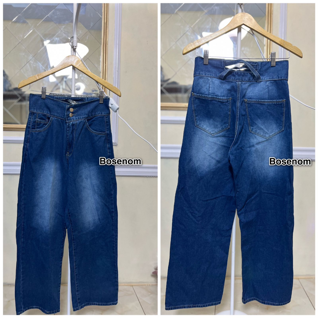 BOSENOM-LOOSE JEANS WANITA 2 KANCING DEPAN PINGGANG BELAKANG VARIASI CROSS X