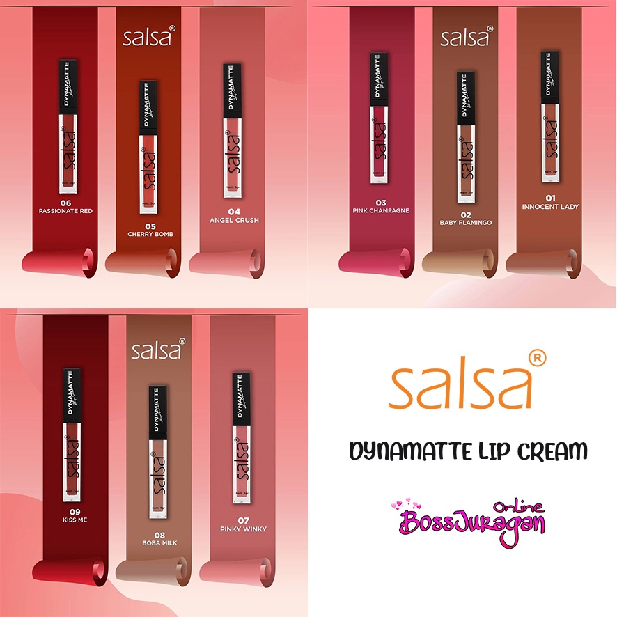SALSA Dynamatte Lip Cream Netto : 5g Produk 100% Original EXP DATE : Tertera Pada setiap Kemasan ya