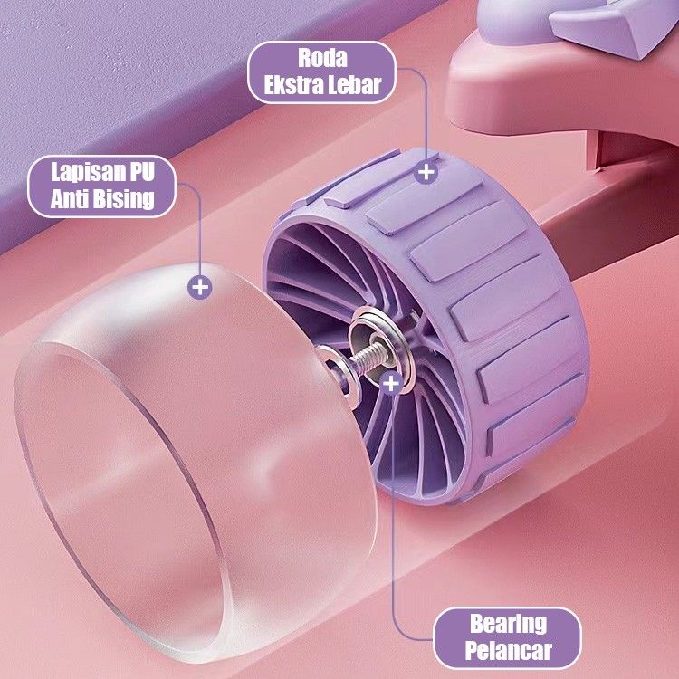- SPEACIAL DESIGNED : Dibuat khusus untuk anak yang sering bermain, tidak bising dan lebih aman (Anti Noise Layer, Extra Wide Wheel, Smooth Bearing)