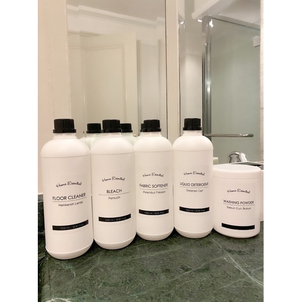 Detail botol 1LITER PUTIH home essential . aesthetic bottle minimalist refill organizer tempat wadah sabun cair estetik laundry room bottle minimalis refill
