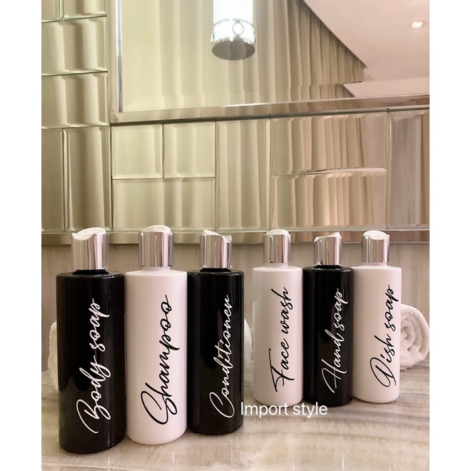 Perlengkapan Rumah > Kamar Mandi > Dispenser, Tempat, & Kotak Sabun > botol 250ml LONG , HITAM PUTIH stiker SILVER LUXURY . aesthetic bottle minimalist refill organizer tempat sabun cair pump estetik