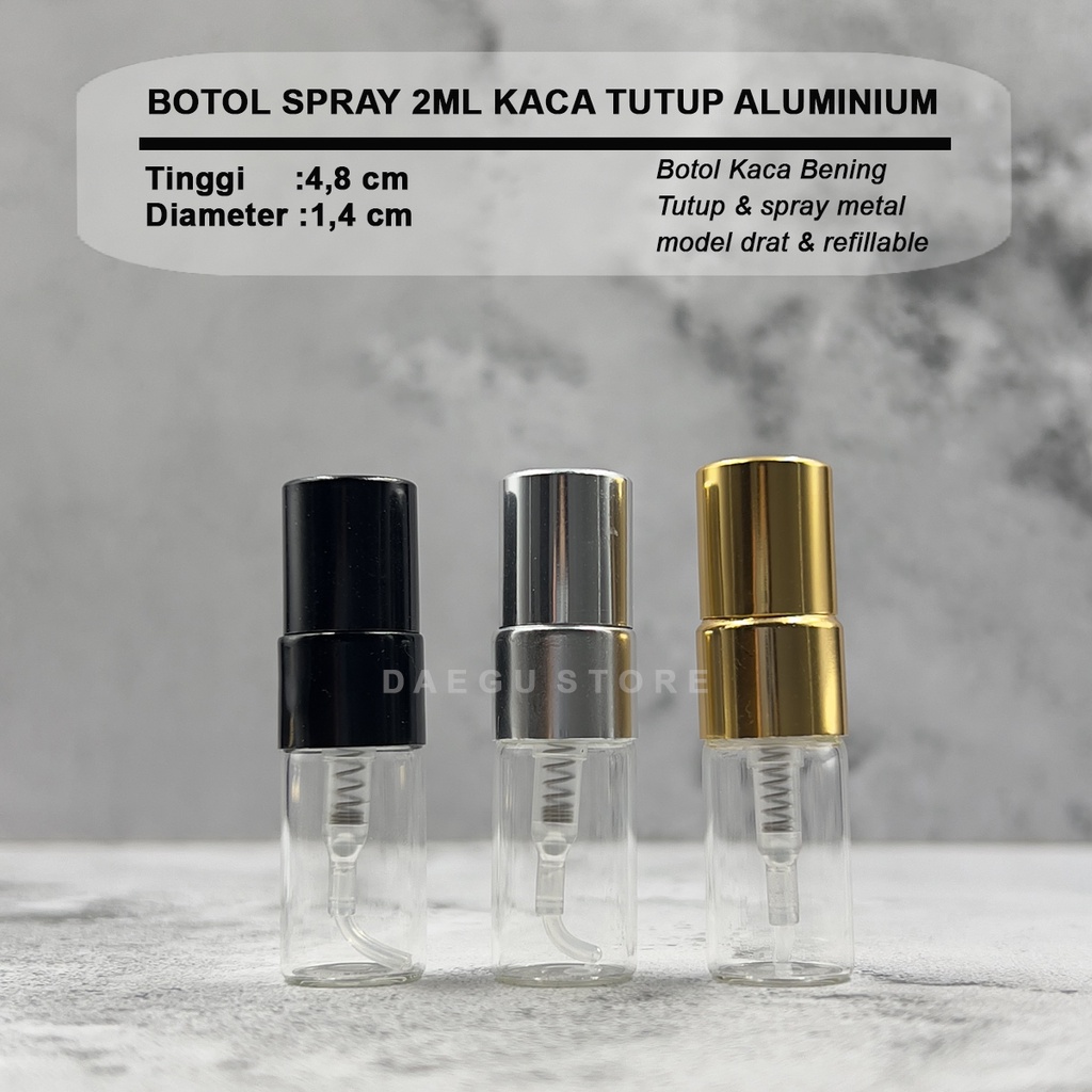 Botol 2ml Spray Kaca - Spray & Tutup Besi / Metal / Aluminium - Parfum Isi Ulang Decant Travel Size