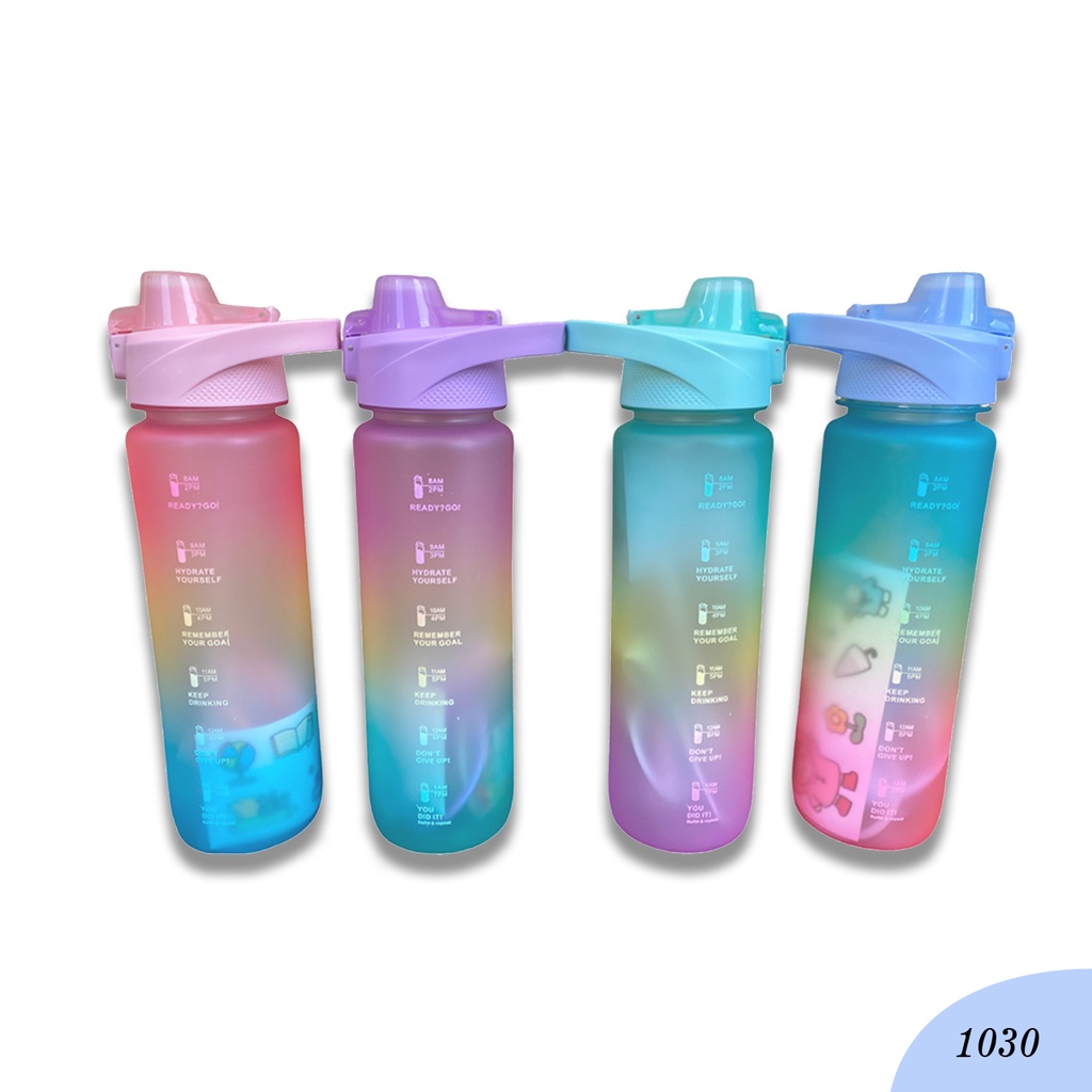 Detail Botol Air Minum Polos Gradasi 2 Warna 900ML Kode 1030 Free Sticker 2D & 3D Botol Warna Gradasi Botol Minum Viral Penanda Waktu Botol Minum Viral Botol Minum Sedotan
