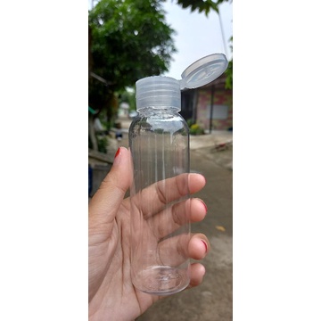 Botol pet 100ml bening tutup natural fliptop. Dapat digunakan untuk wadah minyak, lotion, hand sanitizer, dll