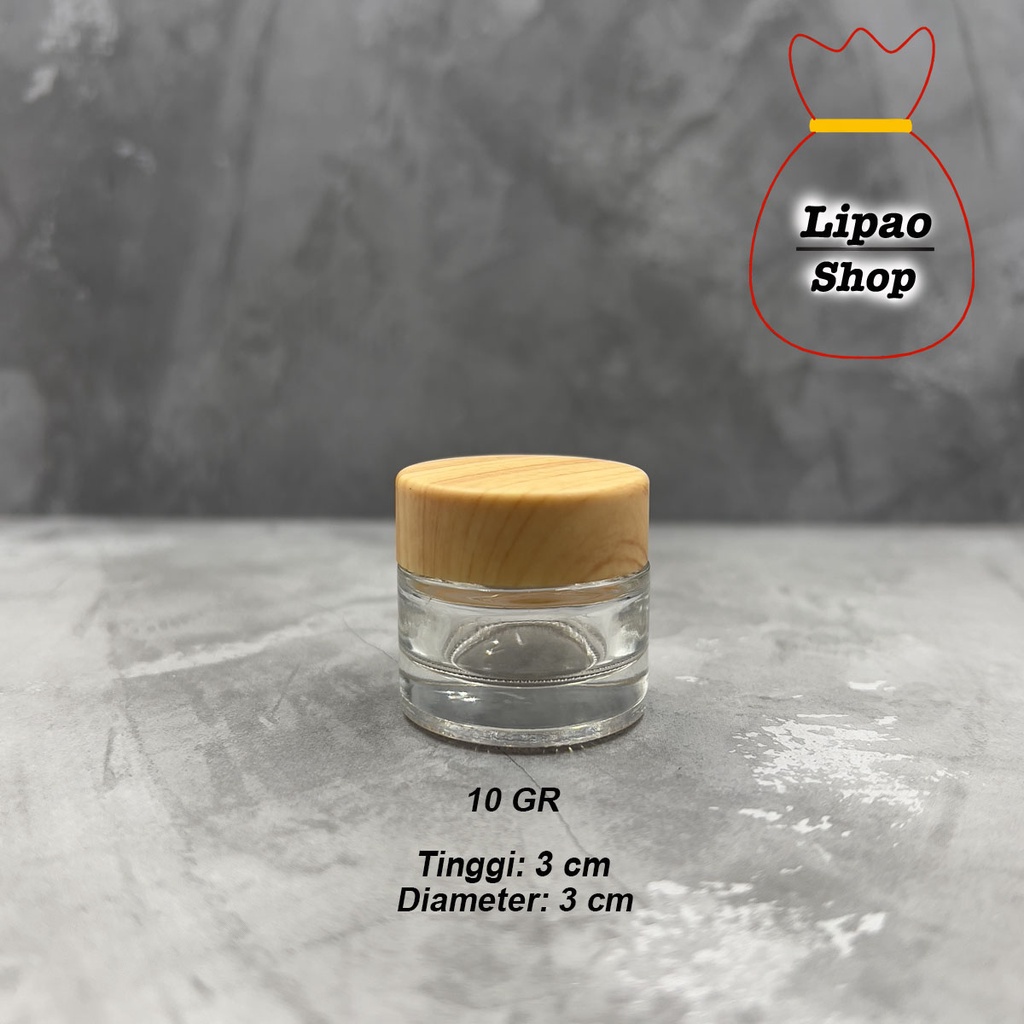 Detail Botol Jar Pot Cream Krim Kaca Bening Tutup Motif Kayu 10gr 15gr 20gr Bulat