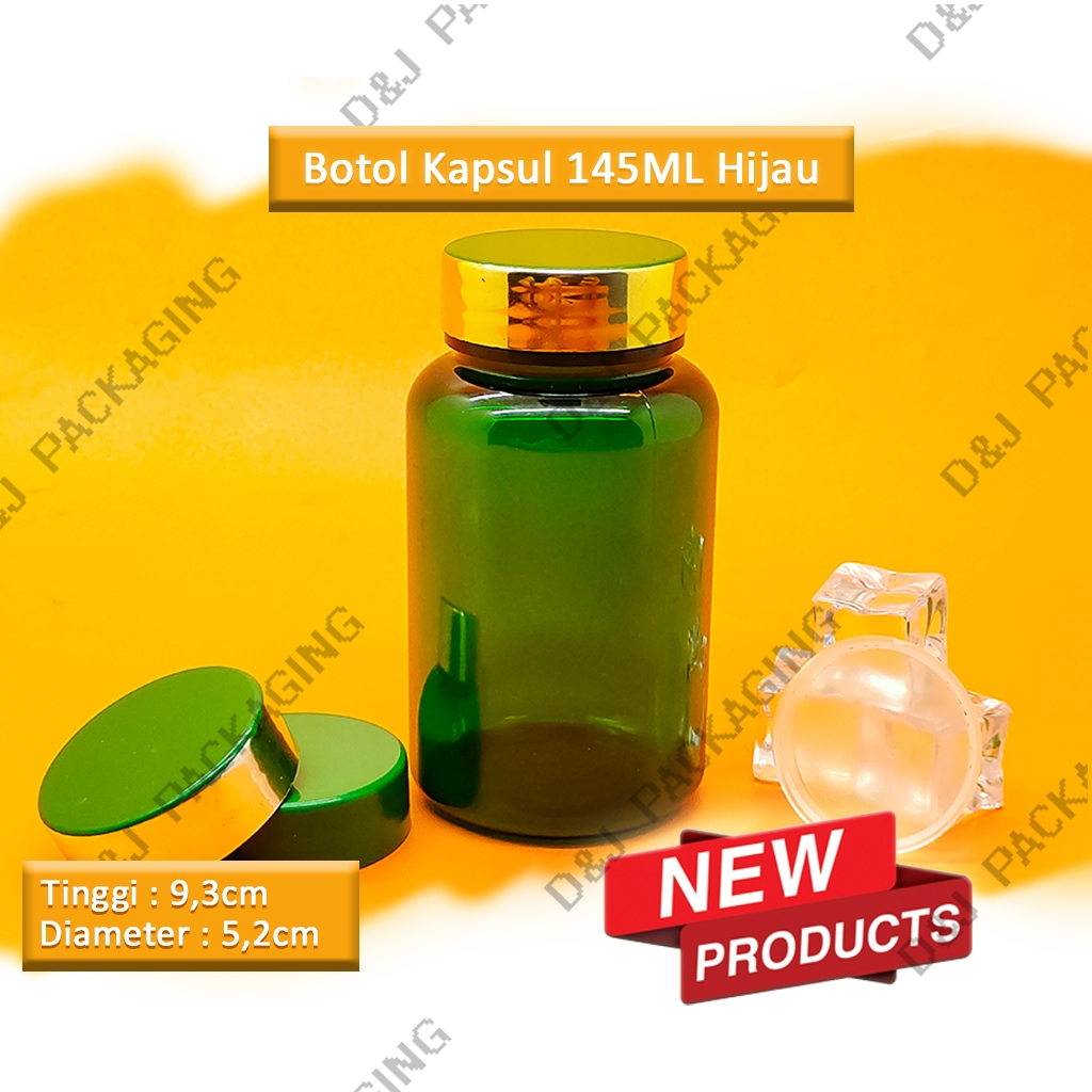 Detail Botol Kapsul 145ML Hijau Tutup All varian Muat 100 Pcs kapsul uk 0 free Inner dalam