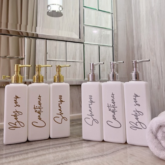 Perlengkapan Rumah > Kamar Mandi > Dispenser, Tempat, & Kotak Sabun > botol KOTAK GOLD NEW PUMP LUXURY 500ml . aesthetic bottle refill organizer tempat sabun cair pump estetik isi ulang liquid soap aestetik