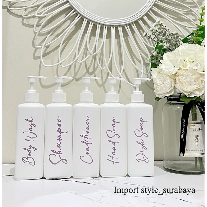 Perlengkapan Rumah > Kamar Mandi > Dispenser, Tempat, & Kotak Sabun > botol KOTAK PUTIH 500ml stiker LILAC . aesthetic bottle refill tempat sabun cair estetik