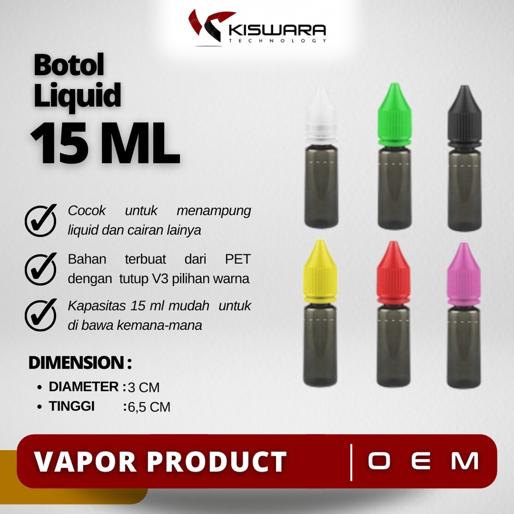 Detail Botol Liquid V3 15ML [Hitam Transparant] [1000PCS/Pack] Tutup V3