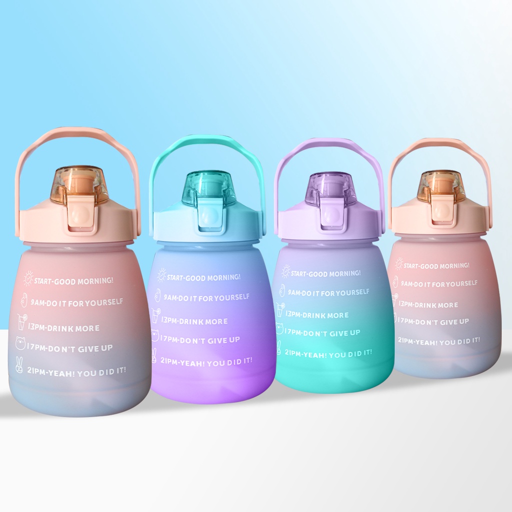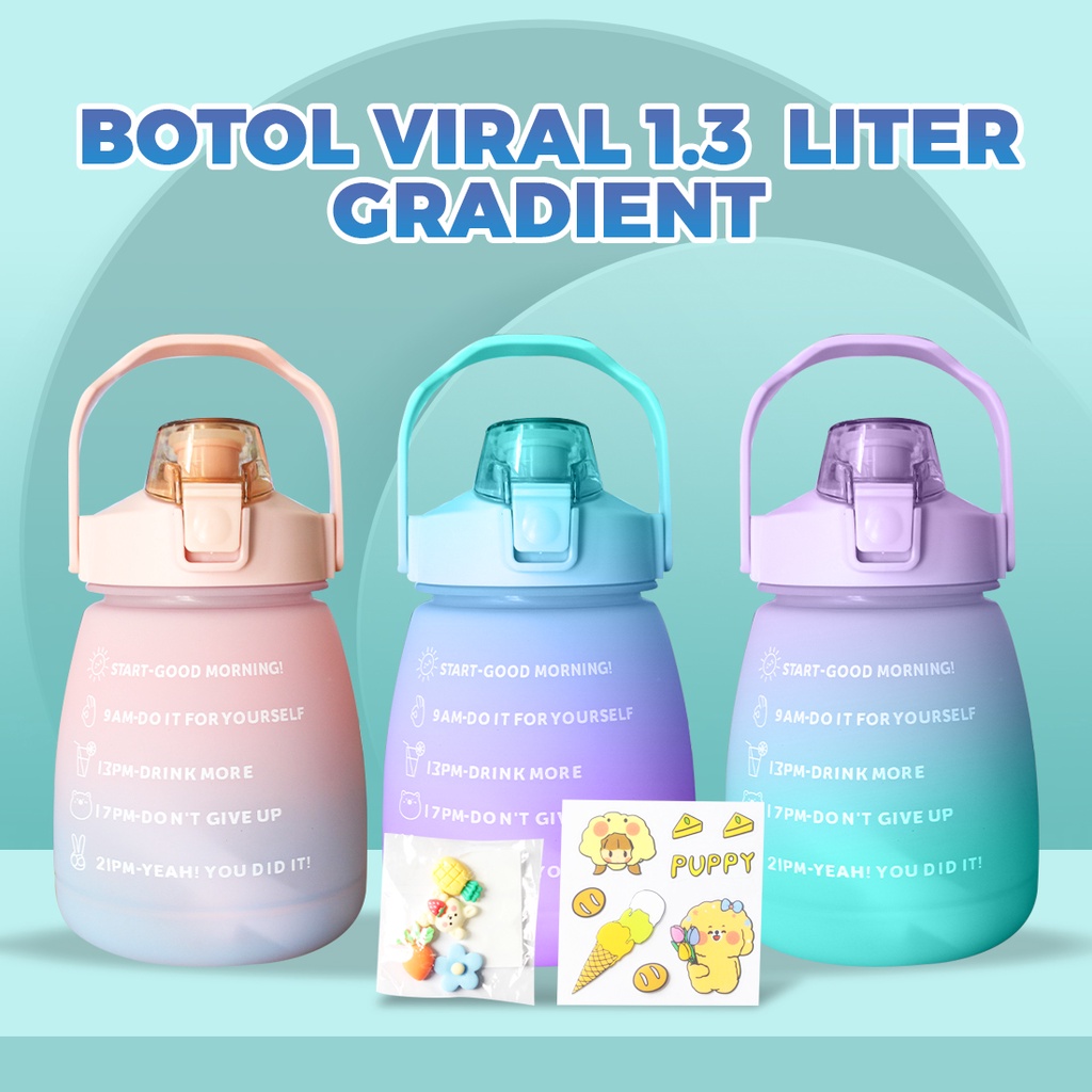 Botol Minum Kekinian 1.3 Liter Botol Minum Viral Botol Pelangi Motivasi Unik Warna Gradasi dapat stiker 2D & 3D