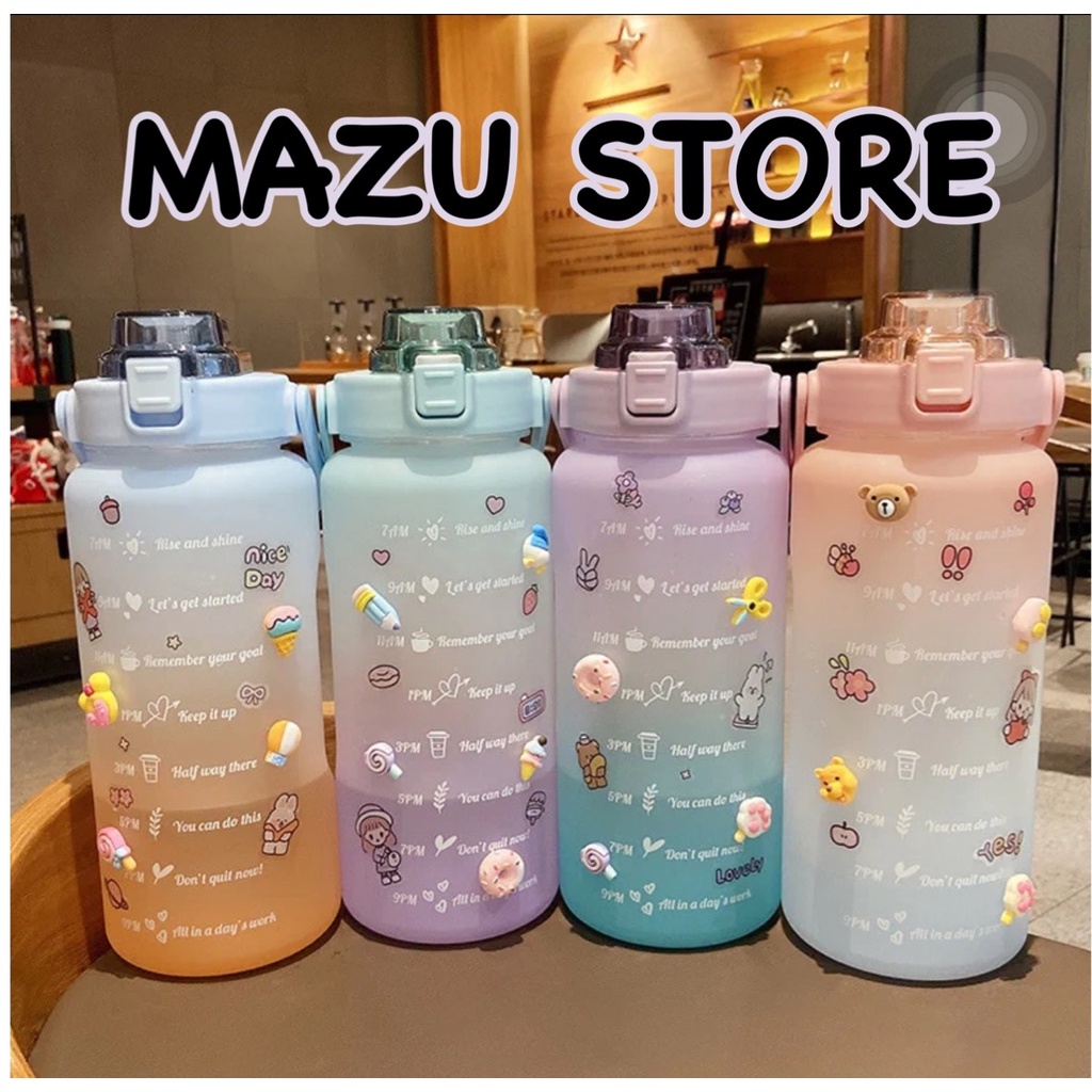 Botol Minum 2 Liter Tutup Flip Dengan Sedotan Tempat Minum Air Penanda Waktu Botol minum viral hits di amazon dipakai artis-artis sekarang ready di Indonesia. Pastikan kebutuhan air kamu sehari-hari sudah tercukupi dengan minum air setidaknya 2L. Dengan penanda waktu di botol yang mengingatkan untuk terus mecukupi kebutuhan harian air putih untuk kesehatan badan. DESAIN FUNGSIONAL: Dengan tutup ulir dengan pegangan, bukaan mulut yang mudah diisi, sedotan yang dapat dilepas, pegangan jinjing, dan penanda waktu yang memotivasi. Transparan dengan skala, bagus untuk membuat rencana minum air setiap hari
