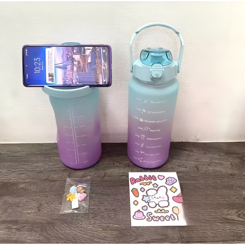 Fitur: - Material Plastik yang Unbreakable - Food Grade ( Aman untuk Makanan / Minuman) - Praktis, mudah digunakan dan dapat di bawa kemana-mana - Kapasitas yg besar yaitu 2000ml - Include Tali + Sedotan dan Gagang + Stiker (tergantung kesediaan) - Tutup yg aman karena sistem Flip Up with Lock - Produk ini aman.