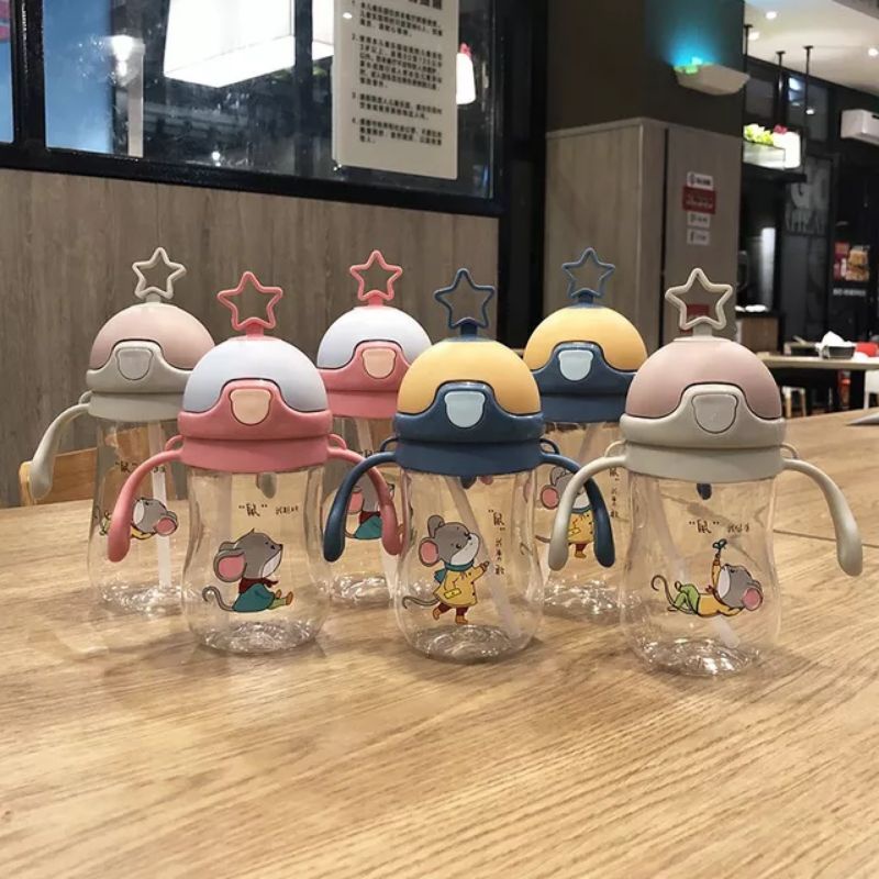 Detail BOTOL MINUM ANAK BALITA TANDUK BINTANG PLUS GAGANG KARAKTER MOUSE TY-0862 280ml