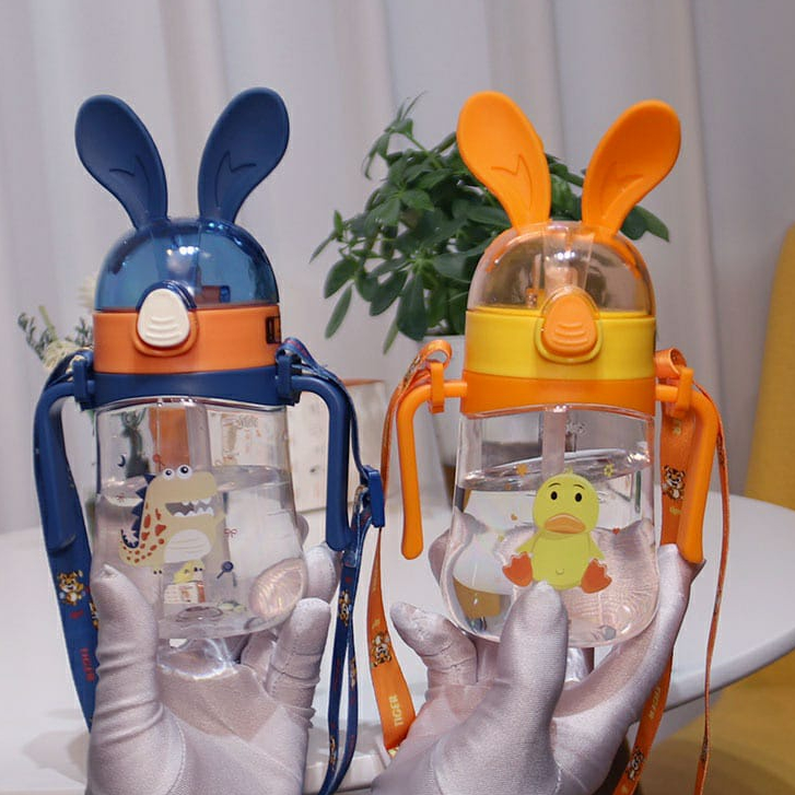 Botol Minum KUPING KELINCI Plastik Karakter Dengan Tali Gantung MATERIAL FOOD GRADE