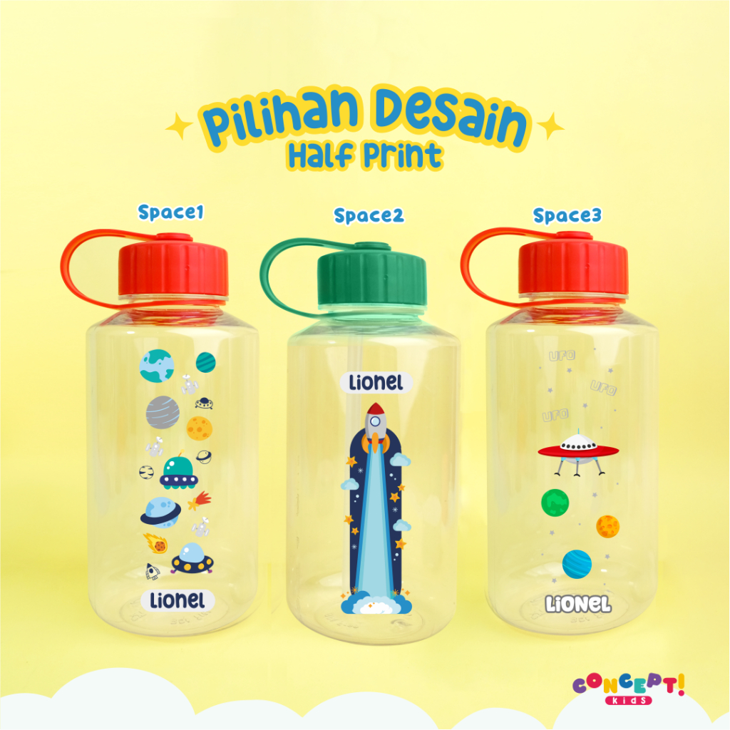 Detail botol : - Kapasitas 1000ML - Bahan polycarbonate BPA FREE & FOOD GRADE - Print tinta UV mesin Jepang (dipastikan lebih tahan lama) - Free Packaging untuk pembelian minimal 12pcs