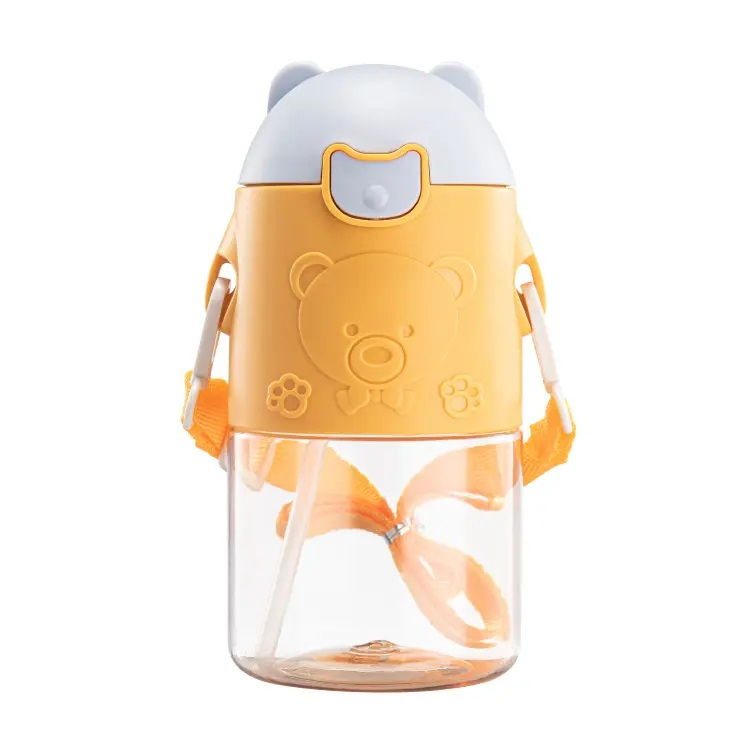 Detail Botol Minum Anak Lucu Animasi Kartun Include Sedotan & Tali Panjang Kapasitas 470ml YQ 0107 BPA free