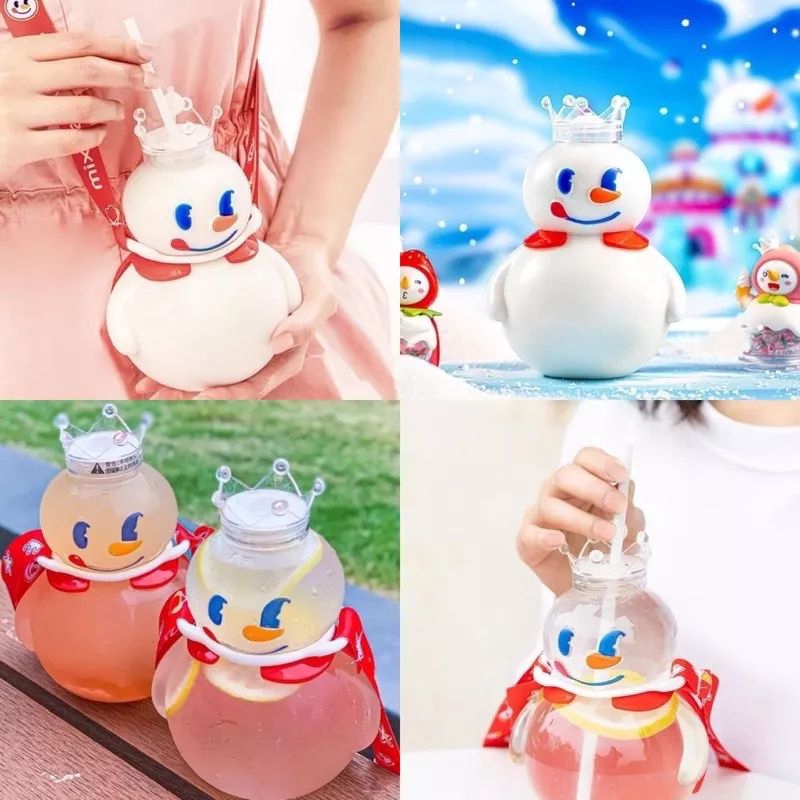 Botol minum yang sangat lucu, dengan motif boneka salju khas. Cocok dipakai untuk minuman segar seperti susu segar, milk tea, tea, ataupun infused water. Selain itu juga cocok dipakai sebagai pajangan (diisi butiran styrofoam putih atau kelereng)