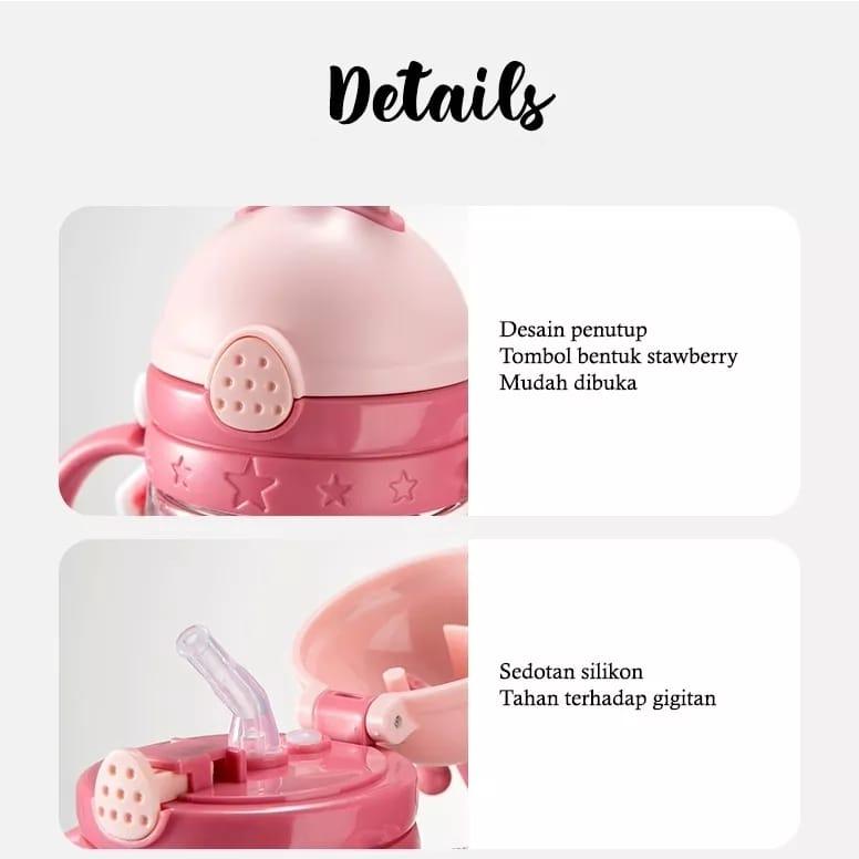 Botol Minum Bayi Training Sedotan+Tali /Botol Minum Anak Lucu Anti Tumpah BPA FREE