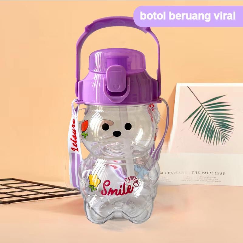 BOTOL MINUM BERUANG BENING VIRAL GEMOY FREE STIKER DAN TALI PANJANG BOTOL MINUM ANAK SEKOLAH BOTOL BERUANG BEAR VIRAL BOTOL ANAK VD