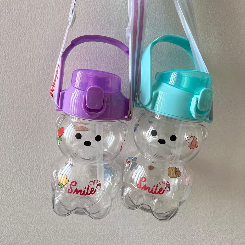 Botol minum beruang bening botol minum viral beruang Desain sampul bouncing, satu klik untuk membuka Sudah ada tali panjang dan botol air praktis Dan sangat mudah di bawa kemana mana (tidak disarankan untuk minuman air panas)