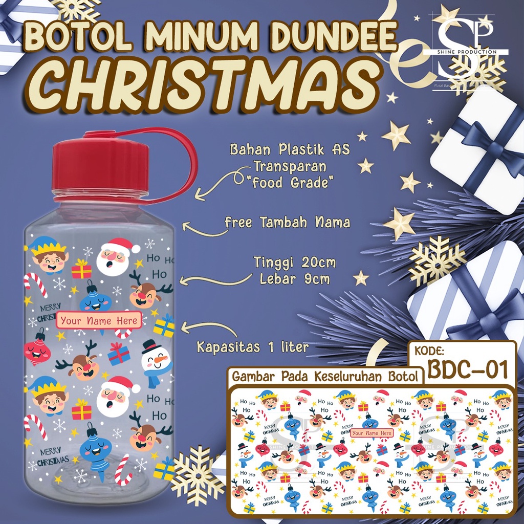 Video perkenalan produk Botol Minum Christmas Edition 1 Liter BPA FREE Custom Nama. Sumber: Shopee.